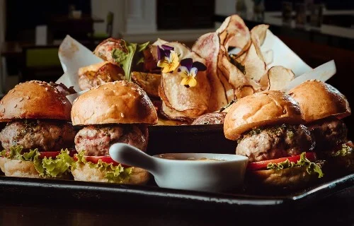 Julio: Recomiendo nuestras hamburguesitas de alpaca, que vienen acompañadas de papas chips y papas nativas. La carne de las hamburguesas es 85% alpaca, lo que le da un sabor único y delicioso. Es un excelente acompañamiento para un Pisco sour.